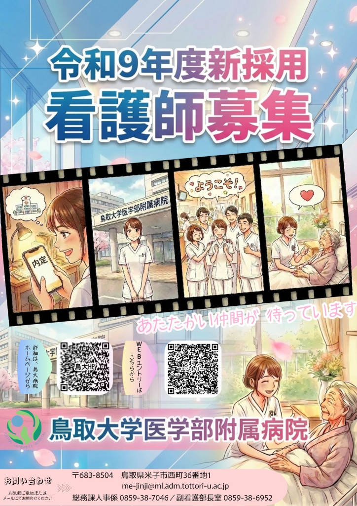 2026.04.16 令和9年度新採用看護師募集!! 令和9年度新採用看護師募集を開始いたしました!! あたたかい仲間が、皆さんを待っています! 私たちと一緒に、「共に歩む」看護をしませんか?🥰 🌟応募要項の詳細↓ https://x.gd/fxYod 🌟WEBエントリー↓ https://x.gd/sECb9 ご応募お待ちしております♪