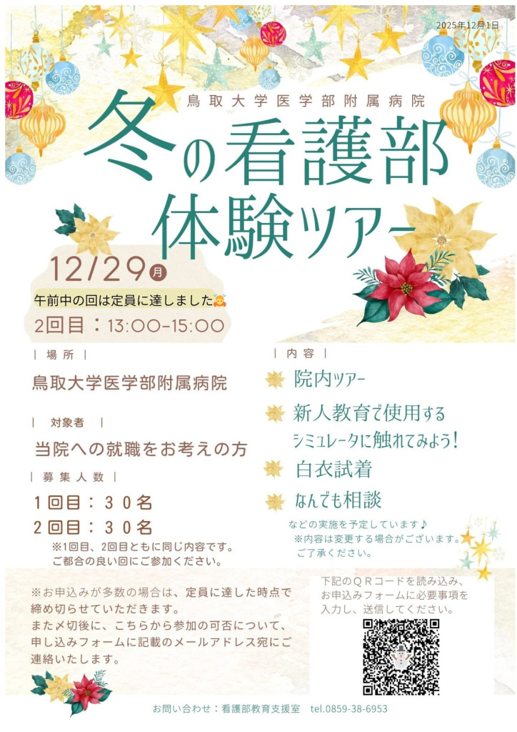 2026年度当院看護部への就職をお考えの方を対象に院内ツアーを開催します。